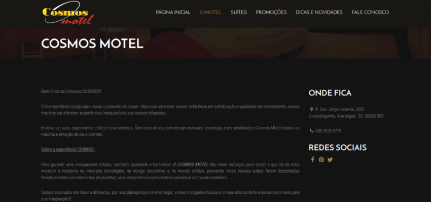 Cosmos Motel inova e fortalece sua marca também na internet. Com foco em proporcionar maior comodidade, a internet atende ao mais crescente canal de atendimento do mundo, e toda empresa atenta ao seu público não poderia ficar fora dessa,...